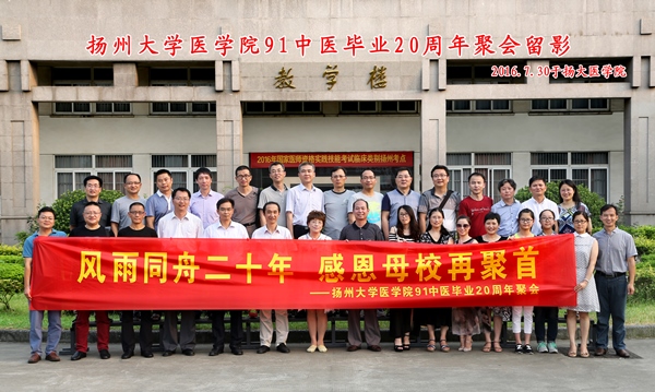 7月30日,医学院91级中医班二十余名校友毕业20周年返校。虽然正值盛夏酷暑,校友们返校时激动的心情更加火热。校友们参观了学院,在曾经学习生活过的校园里频频合影留念,并在学院会议室举行了“风雨同舟二十年,感恩母校再聚首”返校活动。医学院党委书记王炜、副院长鞠永熙、副院长王劲松、班主任高慧敏、教师代表卢开信等老师等出席。