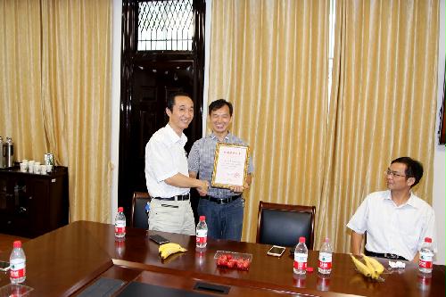 活动中,鞠院长向校友们颁发了校友徽章。校友向“我爱母校”捐赠项目捐款2000元,王炜书记向校友们颁发了捐赠证书。
