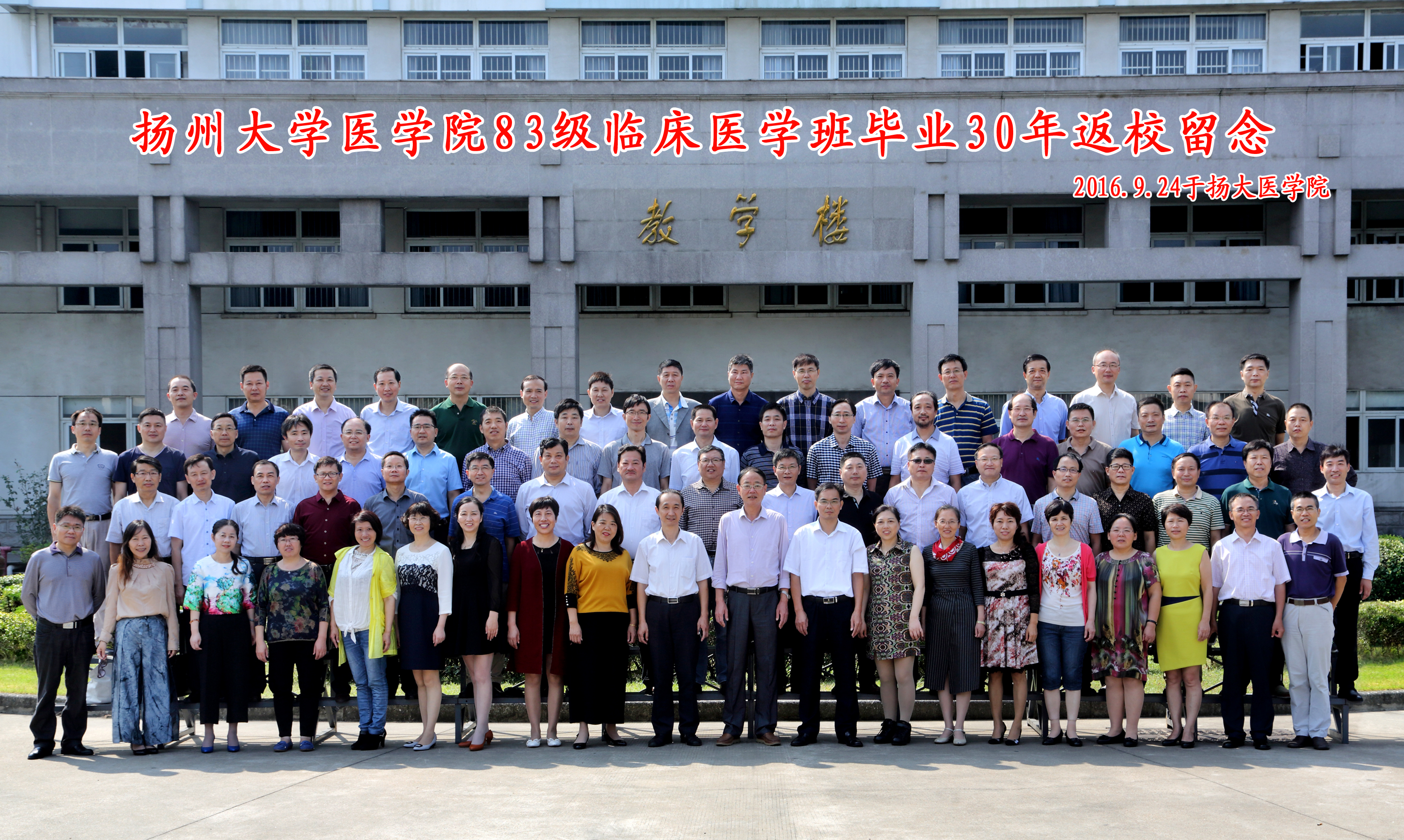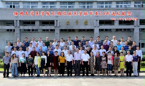 9月24日,医学院83级临床医学班八十余名校友毕业30周年返校。校友们聚集在学院报告厅热烈交流,相互介绍了毕业后各自的工作、生活情况。杨忠清、张爱武、张全安等师生代表深情回忆了三十年间求学、工作的点点滴滴,感谢老师们的谆谆教诲和同学们的相互帮助。中国医药生物技术协会副会长、全国生物样本标准化委员会主任委员、生物芯片上海国家工程研究中心主任郜恒骏校友用“渴望与期盼、一心为团聚、无悔扬医人、因母校自豪、为母校效劳、吾爱我母校” 6句话30个字,表达了自己对母校、对同学的深深情意。随后,校友们参观了学院,在曾经学习生活过的校园里频频合影留念。医学院党委书记王炜、医学院副院长鞠永熙以及部分任课教师代表出席。