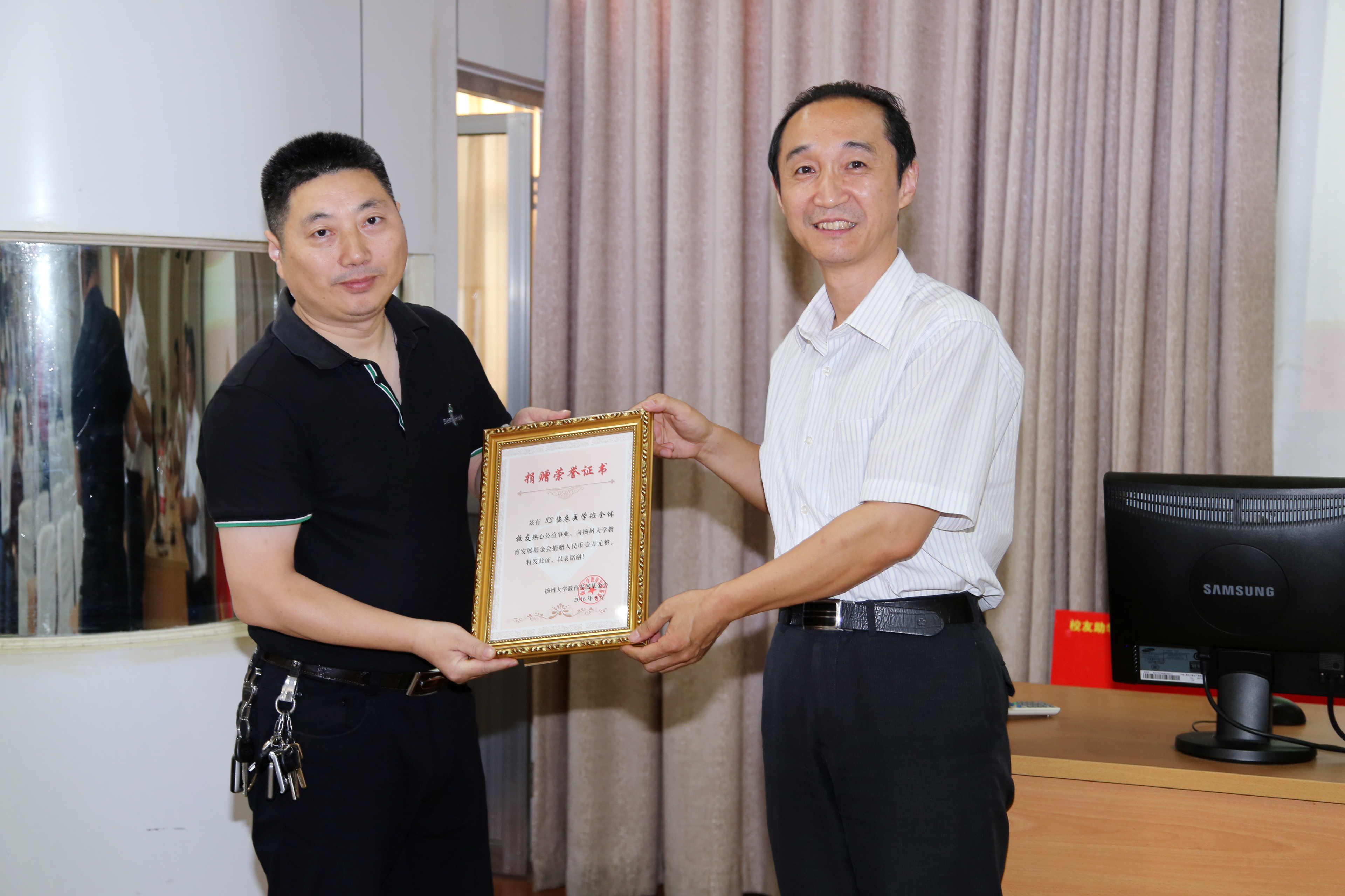 活动中,鞠院长向校友们颁发了校友徽章,校友向吴登云奖学金捐款10000元,王炜书记向校友们颁发了捐赠证书。