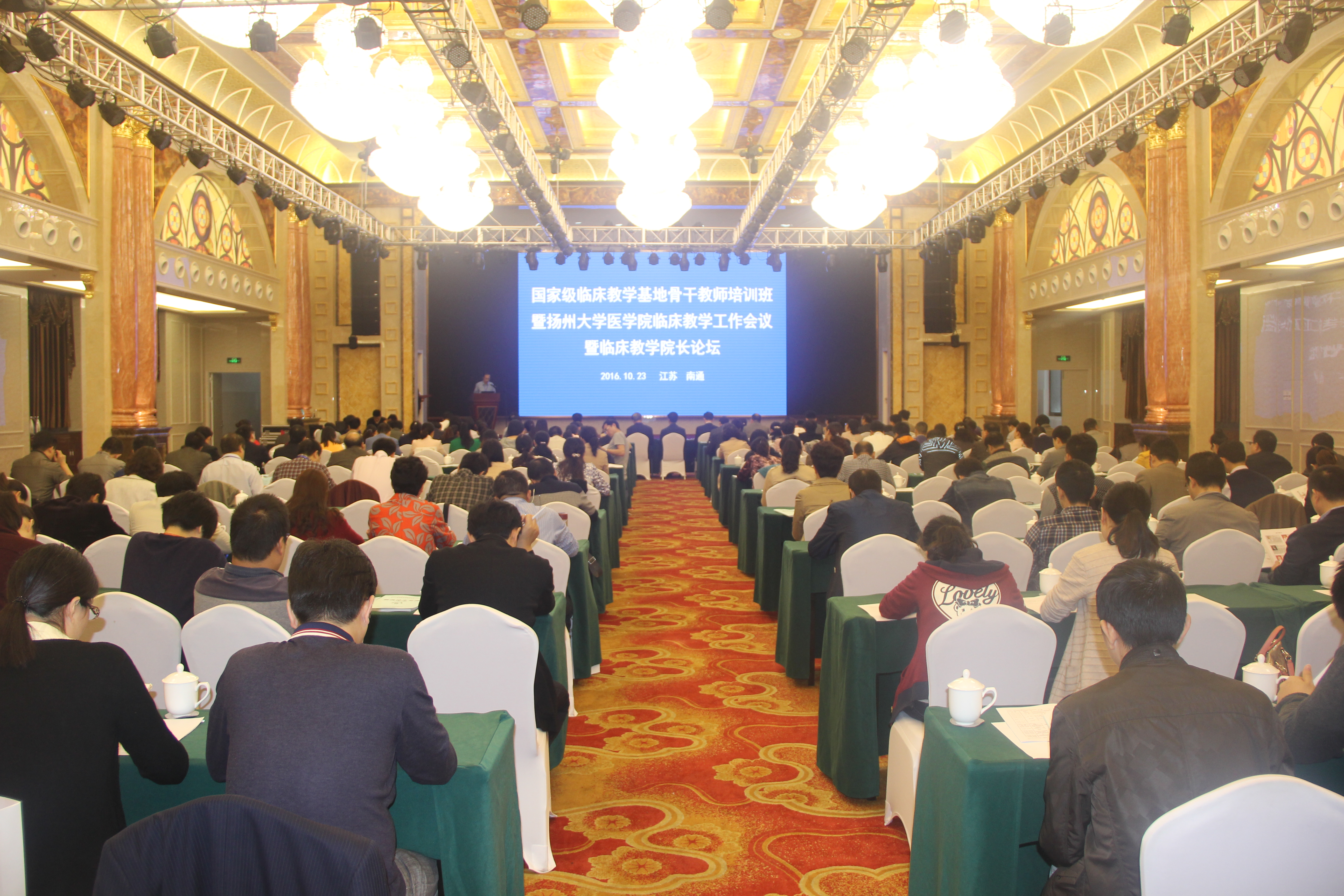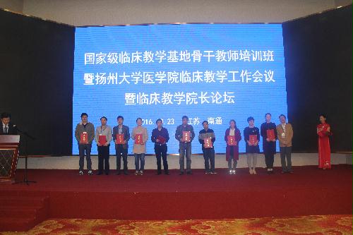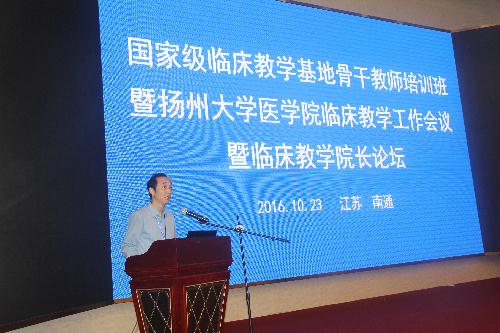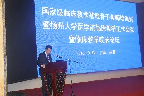 10月22日,医学院在南通举办国家级临床教学基地骨干教师培训班暨扬州大学医学院临床教学工作会议暨临床教学院长论坛。校党委副书记、副校长叶柏森在开幕式上讲话;中国医科大学原副校长孙宝志等有关高校的专家,各附属医院、临床医学院、临床教学医院共48家单位的代表,医学院相关院系领导及教师代表出席开幕式。史宏灿院长主持会议。