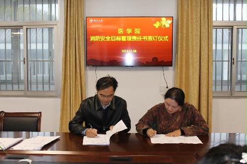 会上,王炜书记、鞠永熙副院长与相关部门、学系负责人分别签订了《扬州大学医学院校园治安综合治理工作目标管理责任书》和《扬州大学医学院消防安全目标管理责任书》。