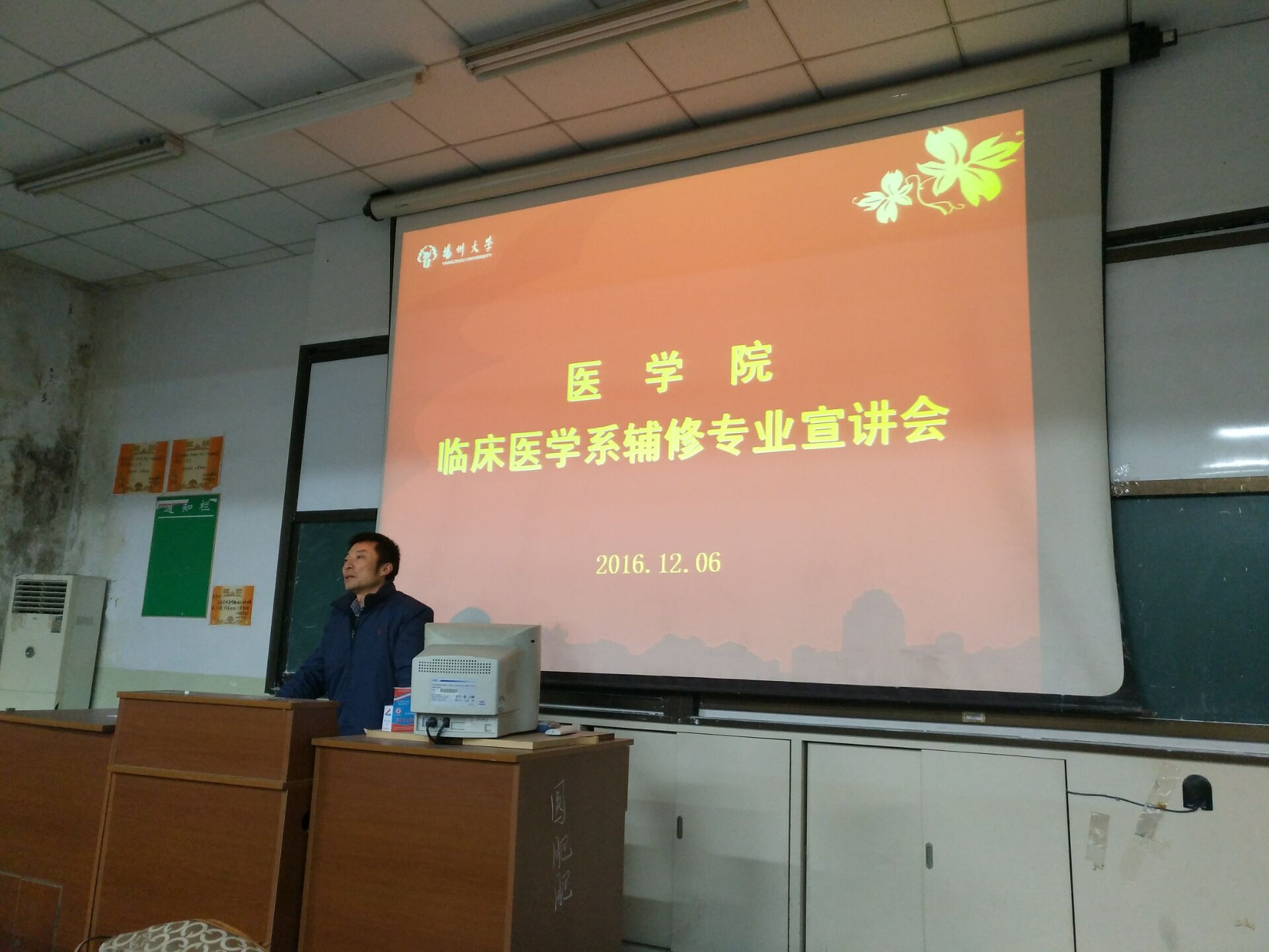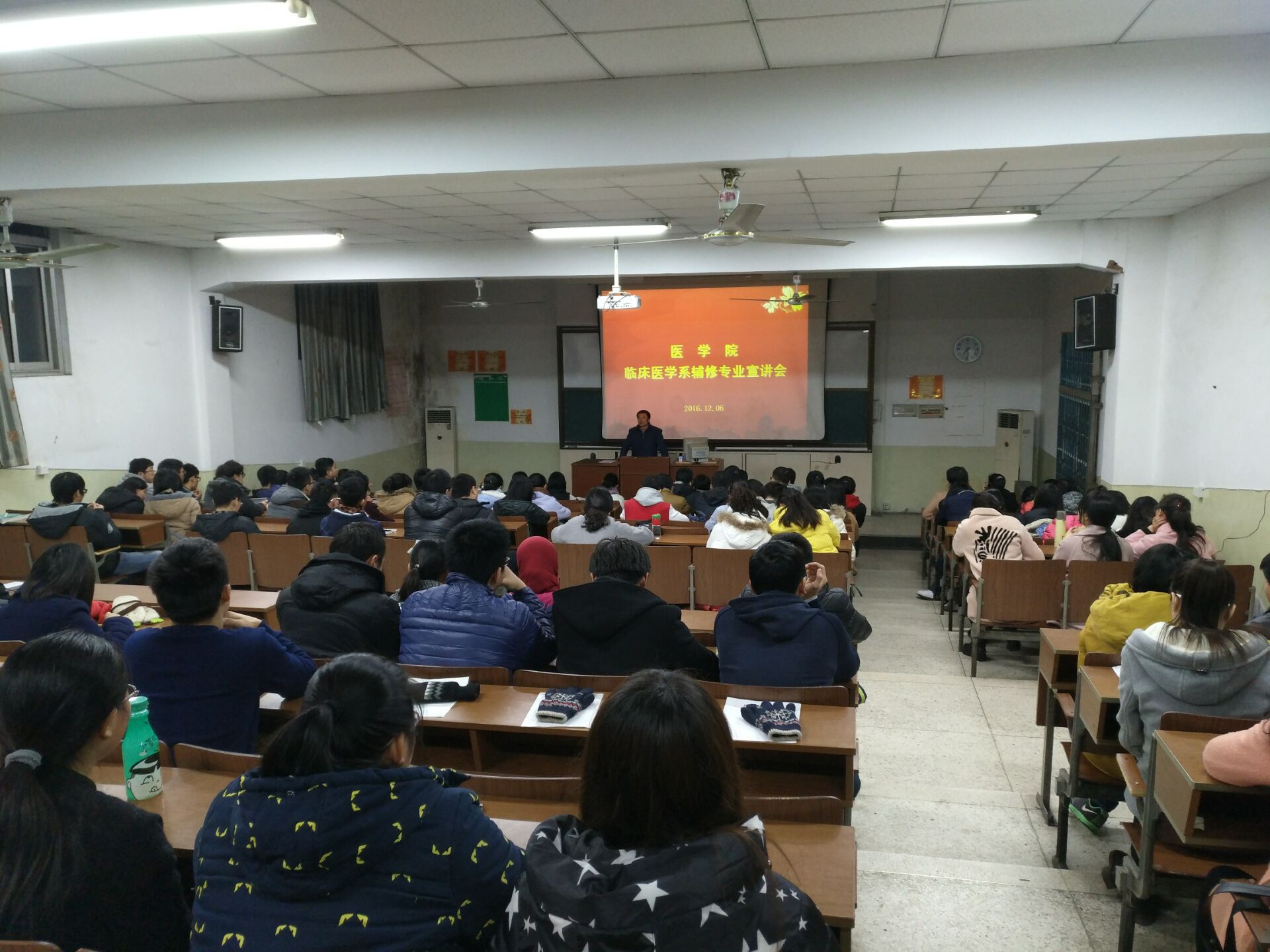 为了进一步明确临床医学专业学生未来的学习和就业方向,医学院临床医学系于12月6日晚五点半于淮海路校区二阶教室举办临床医学系2014级本科生辅修专业动员大会。本次大会邀请了临床医学系书记高慧、系主任孔祥以及苏北医院麻醉科主任纪维等专任教师前来指导,会议由临床系辅导员毛蒋楠老师主持,临床系辅导员李丹阳老师和李吉豫老师参加了本次会议。