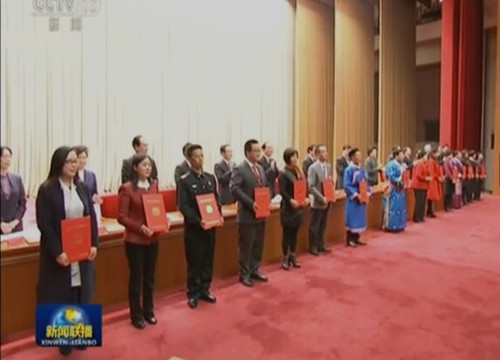 (刘云山等领导为家庭代表颁奖,前排左四为董淑猛)