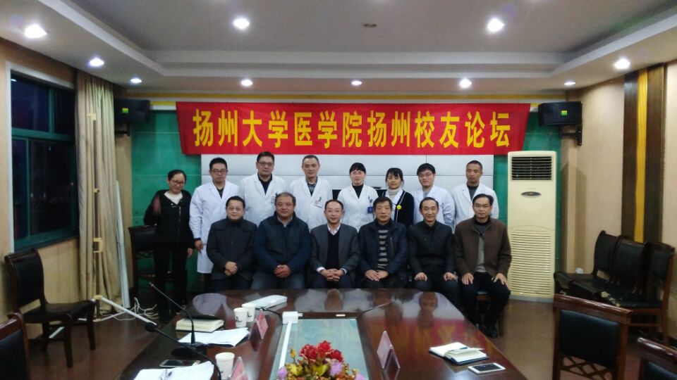12月14日下午,扬州大学医学院扬州校友论坛在宝应中医院如期举行。本次活动的主题是为本科培养方案的修定和学院各类教学,科研与校友进行沟通交流。本次论坛由扬大医学院副院长鞠永熙主持。对外联络办公室主任王庆林,医学院党委书记王炜,医学院校友会扬州分会会长潘惠,宝应中医院党委书记王心亚,院长许景亮,张定国及校友等共十六人出席了本次论坛活动。