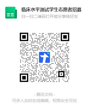 本次临床医学专业水平测试临床技能操作考核在扬州大学江阳路北校区5号楼临床技能中心进行,考试结束后学院本科生教学与管理办公室将出具志愿者服务证明。请拟参加志愿者的同学于2023年4月28日下午5点前填写扫码在线表格进行报名,同时添加学生志愿者工作群(QQ群号:124265978)。待报名结束,学院根据具体情况确定志愿者,开展相关培训。