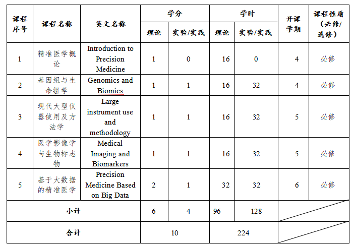 本微专业旨在培养具备精准医学诊断技术的基本理论和实践能力的复合型应用型人才。学生将通过学习组学技术、大数据分析以及大规模生物样本数据库分析等内容,深入了解精准医学的应用领域。培养学生能够在肿瘤检测、产前筛查、药物研发和遗传病治疗等领域中应用精准医学技术,满足现代医学个性化诊断的需求。通过该微专业的学习,学生将初步具备在疾病诊断和治疗、健康管理等领域进行精准医学诊断工作的能力;具备跨学科沟通能力,以促进医学、生物信息学、数据科学等领域的协同创新。