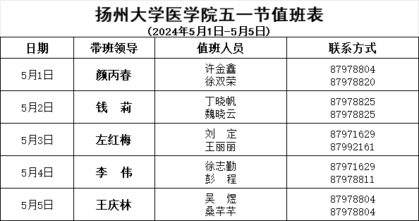 扬州大学医学院五一节值班表