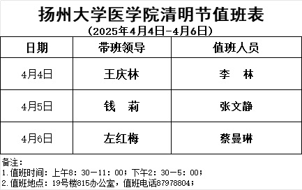 扬州大学医学院清明节值班表