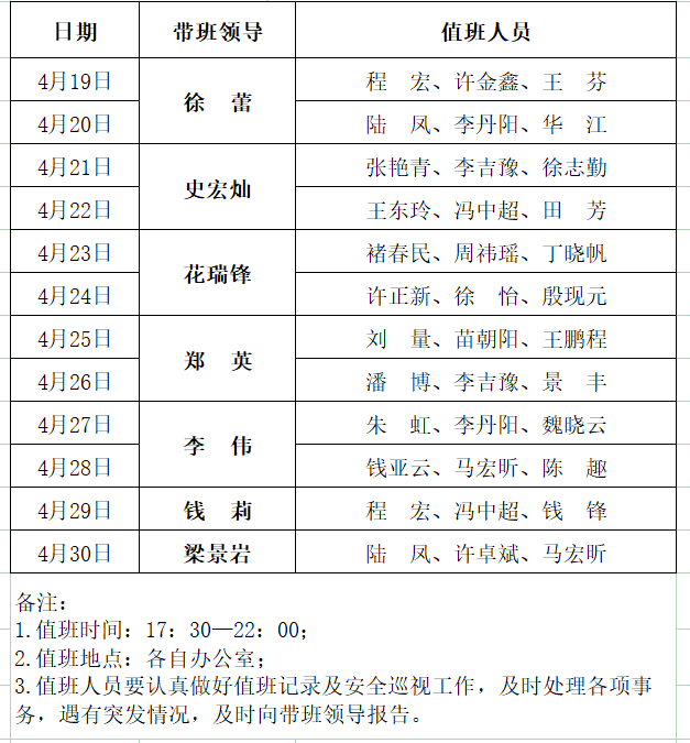 扬州大学医学院2020年春学期值班表(晚间)(2020年4月19日-4月30日)