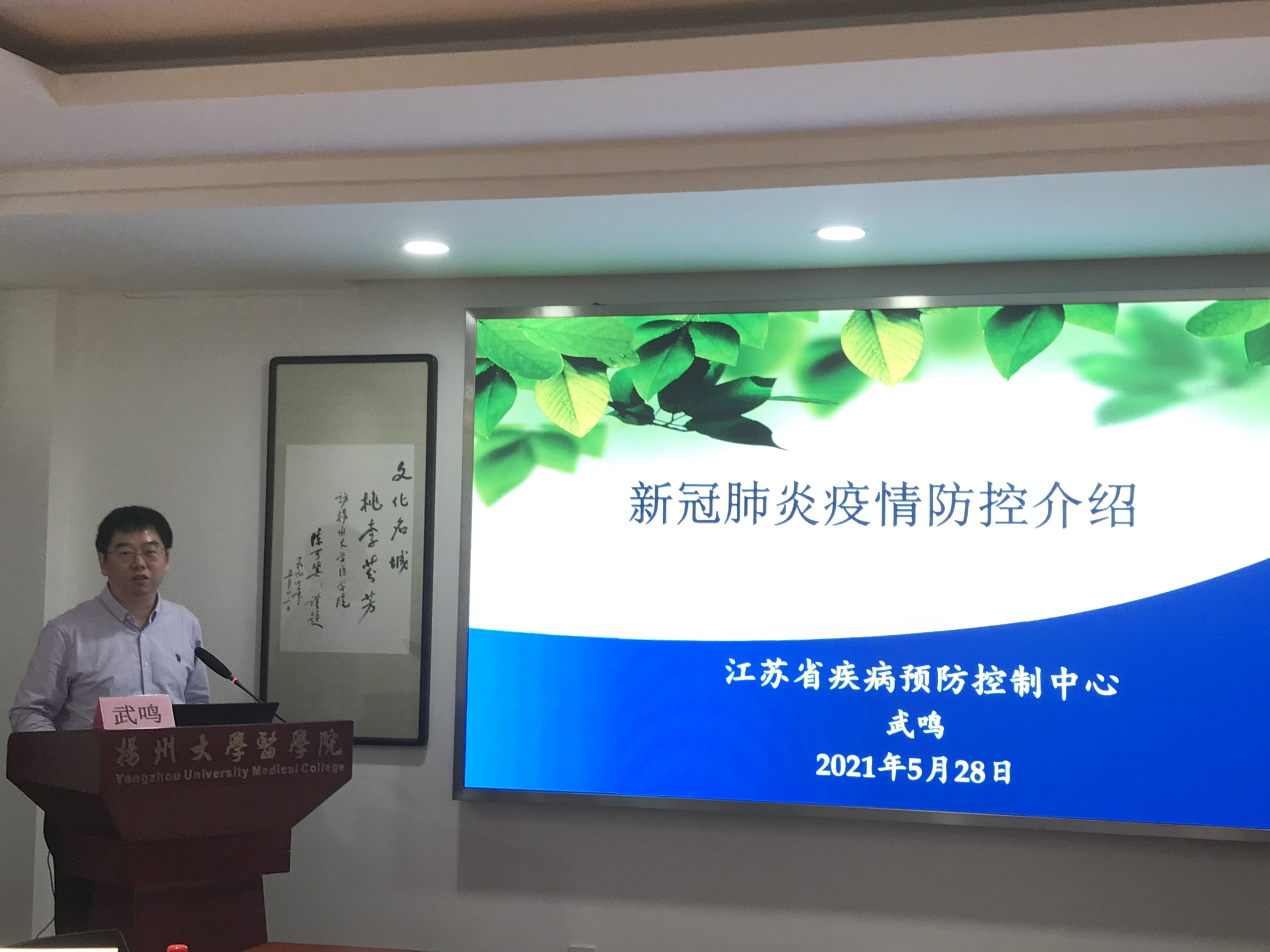 5月28日下午,学院邀请江苏省疾病预防控制中心主任武鸣教授来我院做了一场“江苏省新冠疫情防控工作”的学术报告。扬州市卫生健康委员会副主任王劲松主持了学术报告。