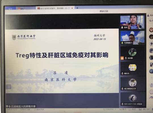 吕凌教授主要从事肝脏移植外科的临床和转化医学的研究。在Nature Reviews Immunology,Cancer Discovery, Gut,Hepatology等杂志发表研究成果近百篇,连续入选爱思唯尔中国“高被引学者”医学类榜单,入选国家百千万人才工程,被授予“有突出贡献中青年专家”,是国家自然科学优秀青年基金获得者和科技部863青年科学家,曾获中国科协求是杰出青年成果转化奖,荣获江苏省科学技术奖一等奖,中华医学科技奖二等奖。吕凌教授就xbp1和fstl1影响肝脏巨噬细胞的极化和功能从而促进脂肪肝炎的发生发展及Treg的临床转化应用研究做了专题报告。报告结束后,师生通过在线交流的形式与吕凌教授进行了热烈的讨论,通过报告和讨论,大家不仅进一步体会到了肝脏区域免疫的重要性,同时也拓宽了对基础医学与临床转化的认识。