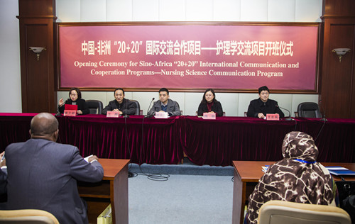 11月30日上午,中非“20+20”国际交流合作项目——护理学交流项目开班仪式在校行政楼一楼报告厅隆重举行。副校长陈永平,海外教育学院院长郭丽,医学院党委书记王炜、副院长王正兵、龚卫娟,以及留管战线的部分教师和学生志愿者代表出席了开班仪式。
