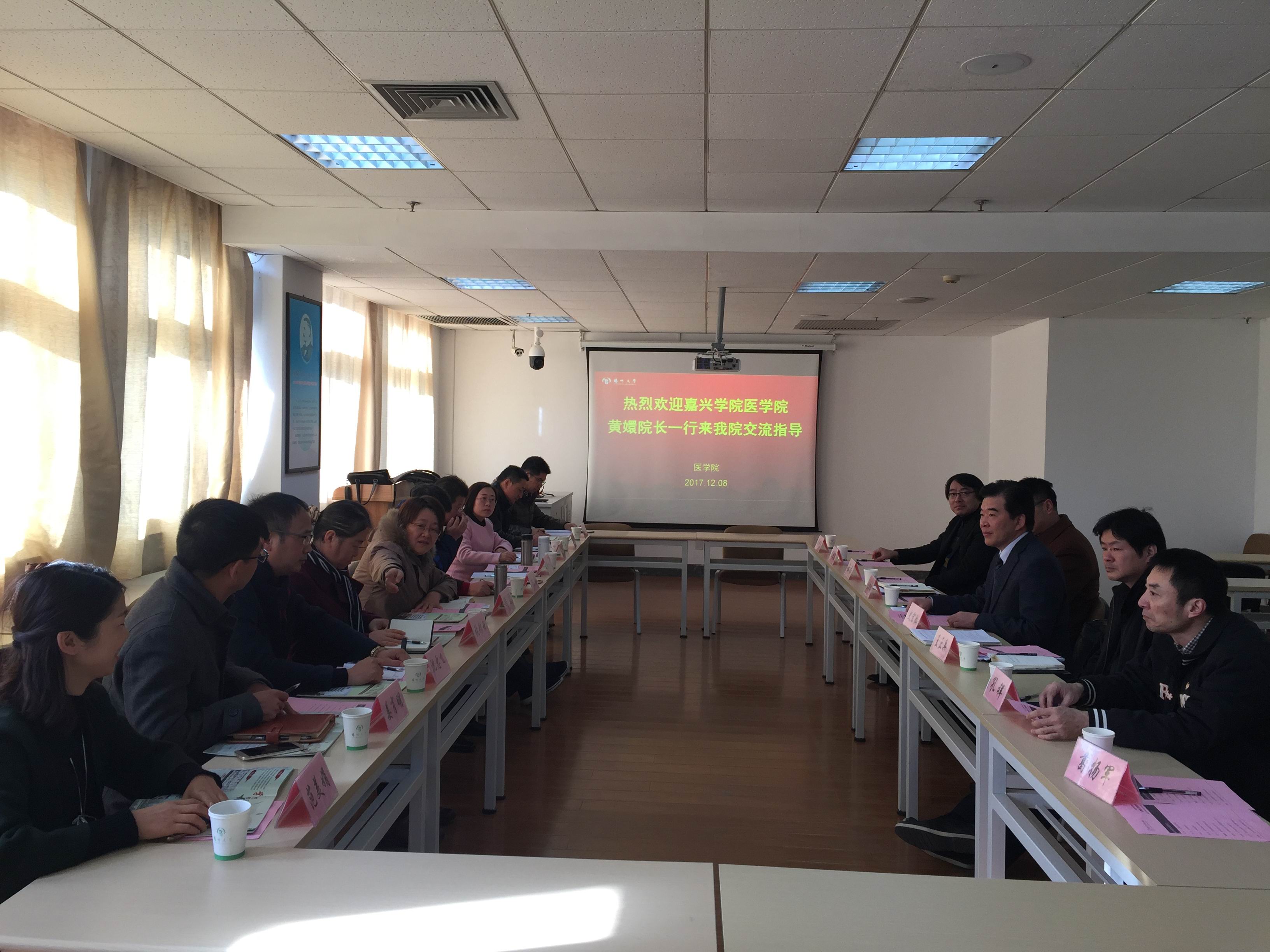 12月8日上午,嘉兴学院医学院常务副院长黄嬛等一行10人来我院考察交流,我院院长史宏灿、副院长王正兵、王劲松等领导及相关学系负责人参加了交流会。