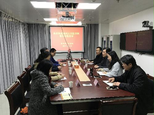 之后,泰州人民医院黄书记代表医院也表达了对我院一贯支持工作的感谢。黄书记从医院的发展现状、科室调整以及对驻点班同学的衣食住行、学习的硬件条件以及师资力量等各方面进行具体介绍,并对我院的驻点班同学的表现给予充分肯定,他表示,医院一定会对学校负责,对学生负责,办好驻点教学。随后,与会的其他领导及相关部门老师就驻点教学的相关细节进行了深入交流。