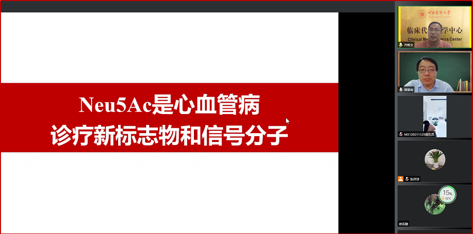 齐教授首先向各位师生讲解了临床代谢组学的概念、研究方法及其代谢谱征在疾病诊断、药物靶标发现、药效评估中的最新研究进展,并结合自己课题组近年来在代谢组学研究中发现诊断与治疗心血管病、糖尿病、肿瘤等代谢性疾病创新靶标的研究经验,详细讲解了发现心血管病诊疗新标志物和信号分子N乙酰神经氨酸(Neu5Ac)与心肌肥厚启动因子神经氨酸酶NEU1在心血管疾病中的新生物学功能的研究历程;最后介绍了该课题组以NEU1为靶标的抗心血管疾病药物的最新研究进展,这为指导如何围绕临床开展心血管相关疾病的诊断与干预靶标研究提供了新思路与方法。