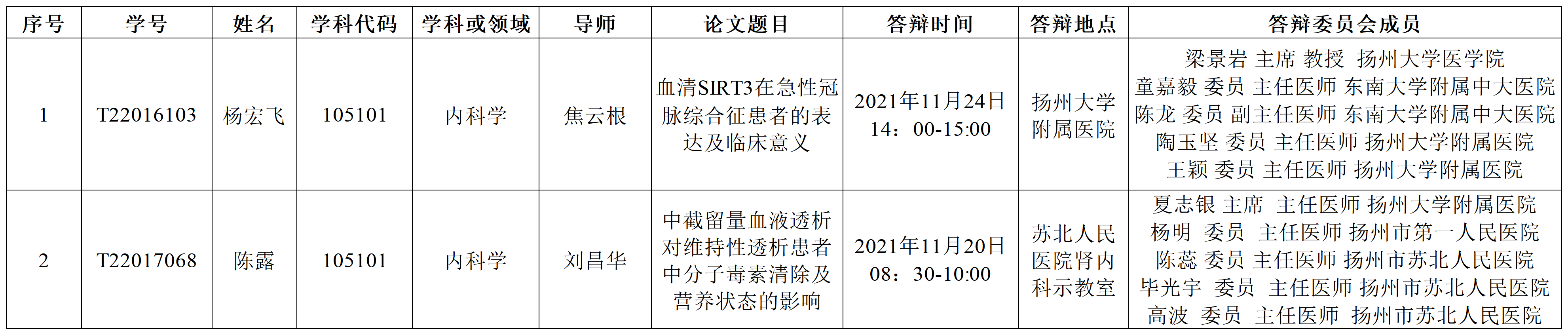 医学院2021年12月硕士研究生论文答辩信息公告6
