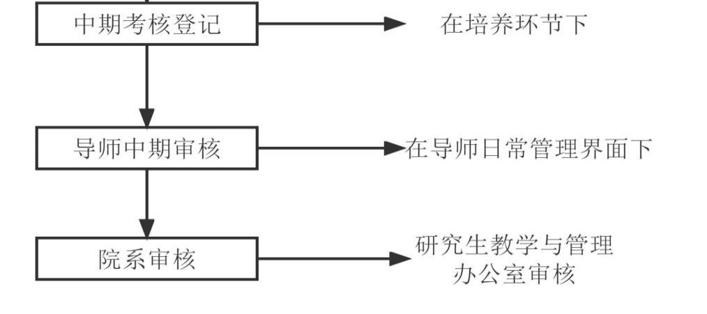 2.研究生论文中期考核须通过“研究生综合管理信息系统”进行登记,具体操作流程见下图。