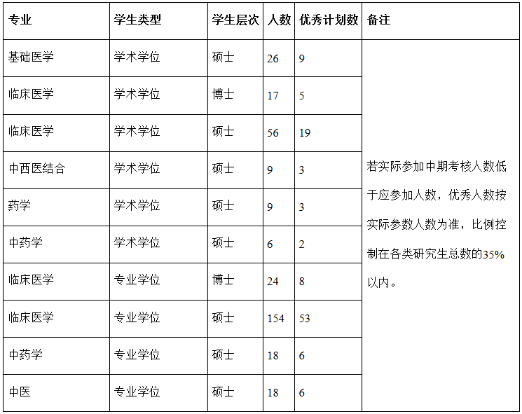 表1.2021级研究生各专业人数及优秀等级名额分配